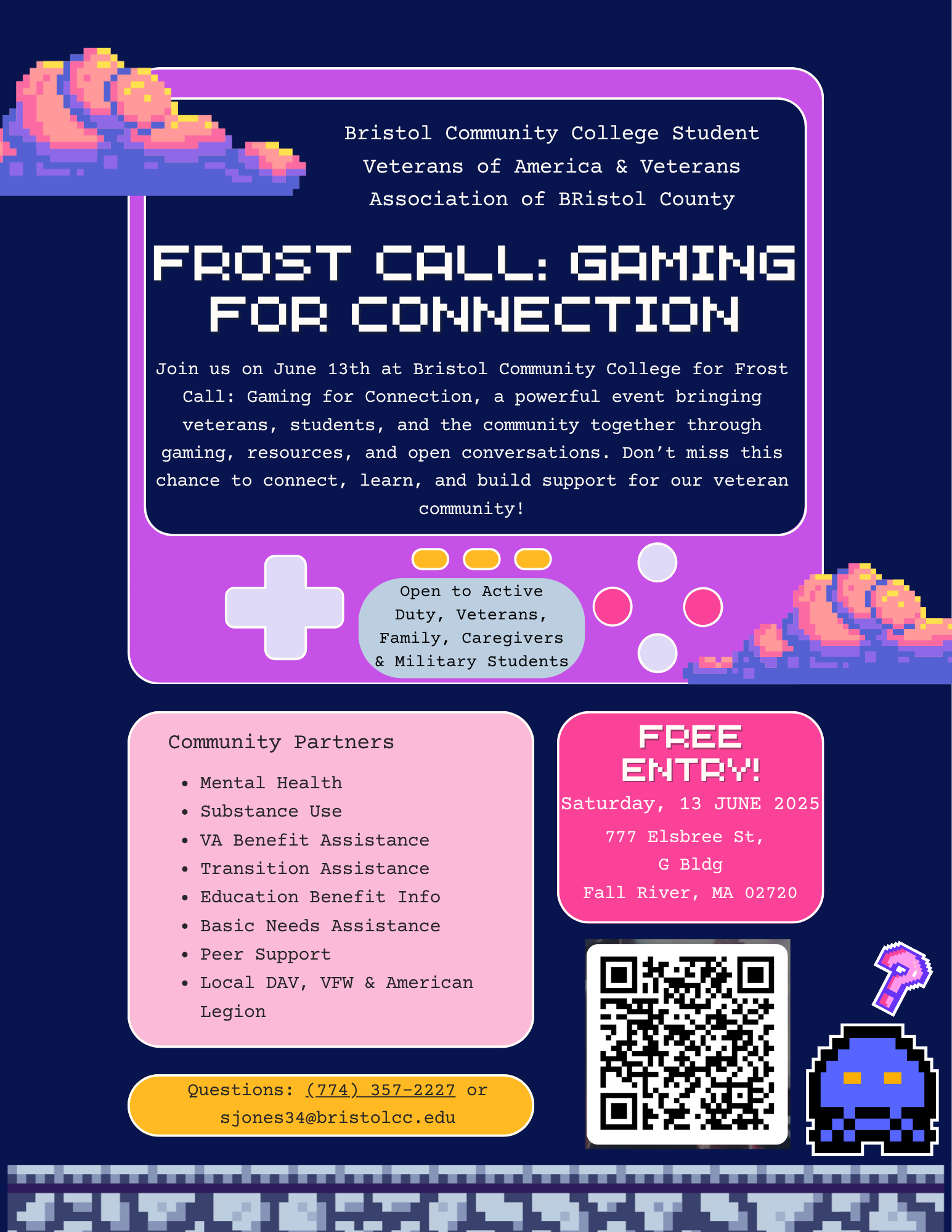 Join us for Frost Call: Gaming for Connection, an event designed to bring veterans, students, and the community together through gaming, mentorship, and wellness programming. Attendees will have the chance to connect with peers, participate in engaging activities, and access valuable resources, including information on VA benefits. This initiative supports mental health, builds resilience, and fosters meaningful connections. Play, learn, and connect in a safe, affirming environment!